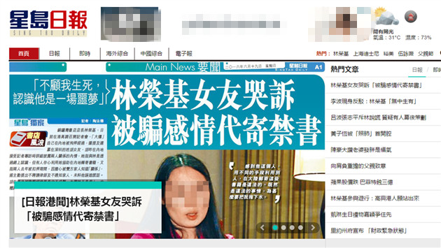 《星島日報》今日隨即以A1頭條,刊登了題為《林榮基女友哭訴「被騙感情代寄禁書」》的獨家專訪。