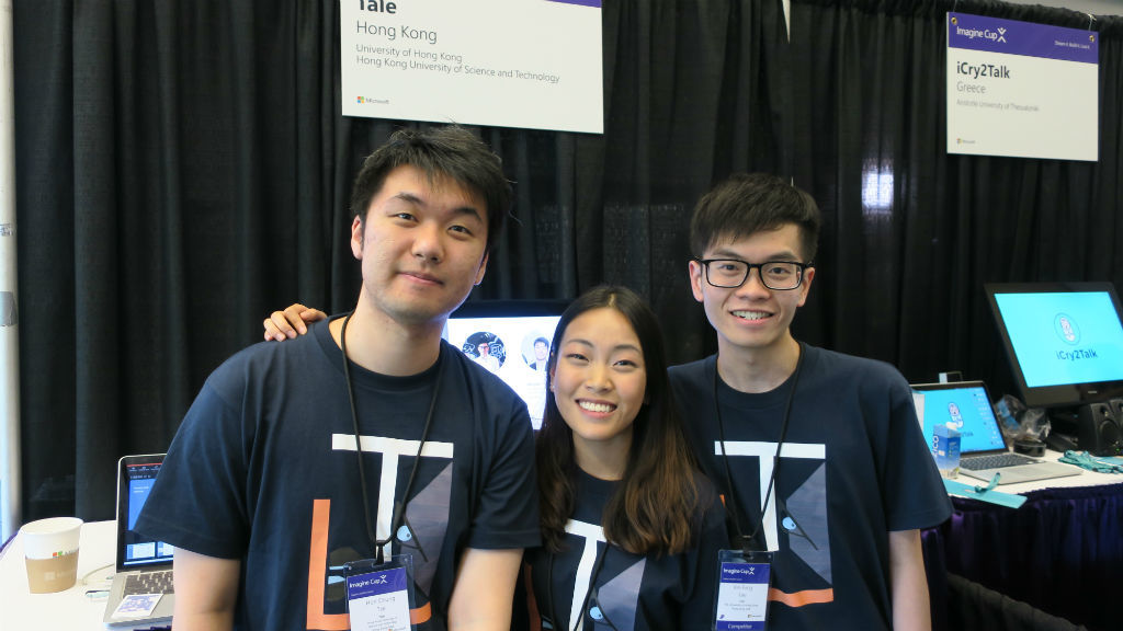 香港重視英語教育,但學生對運用英語的信心仍舊不足。3位本地大學生,劉健鋒(David)、謝漢宗(Douglas) 及劉潔盈(Jaime)組成團隊「Tale」,研發以AI(人工智能)訓練學生英語演說的應用,代表香港遠赴西雅圖參加潛能創意盃(Imagine Cup)世界賽事。雖然最終未能獲獎,但團隊指參賽僅是他們的起點,希望繼續在項目上努力,將來以之創業。